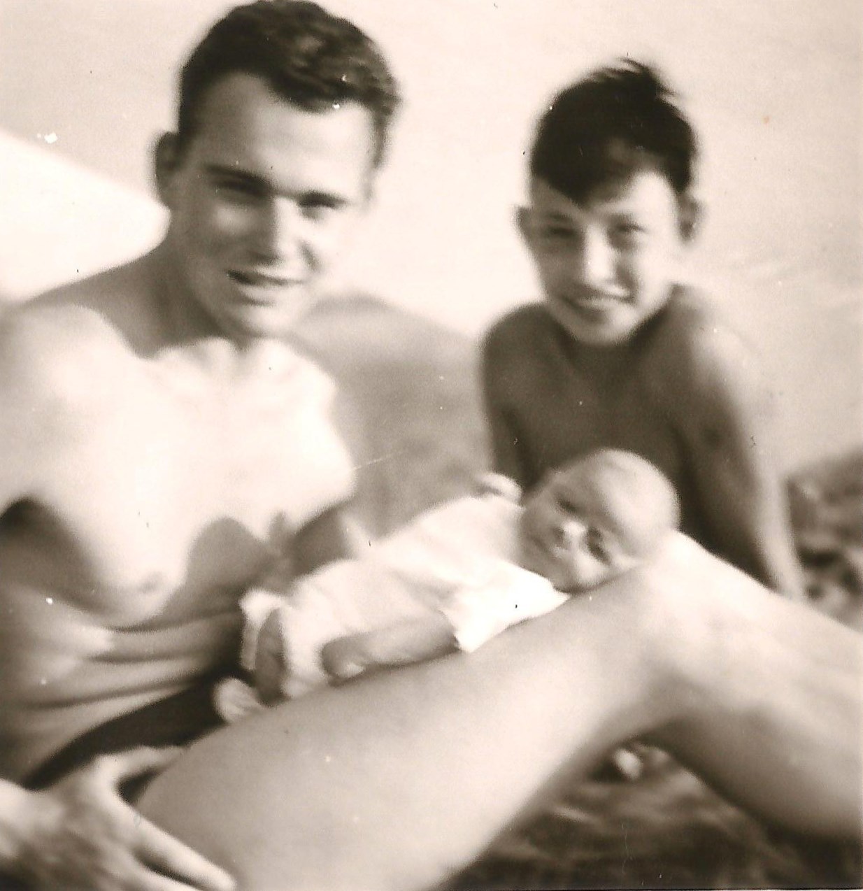 Von links: Mein Vater Erik mit Meret und Wolfi / Wolfgang.