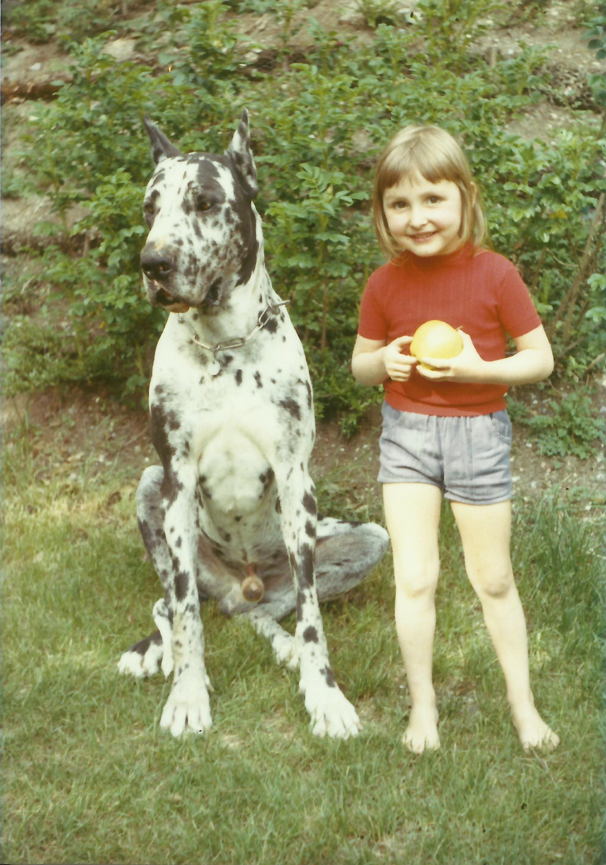 Nicole mit unserem Hund Fleck 1972.